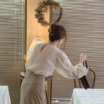 シンプルなホワイトのブラウスなので