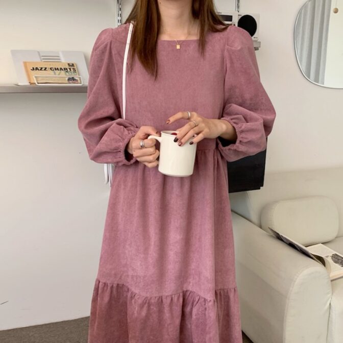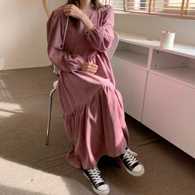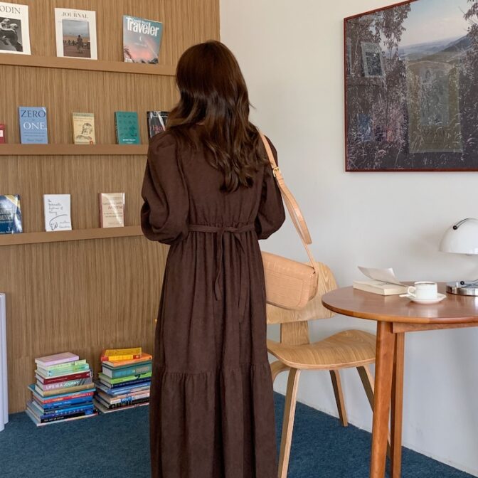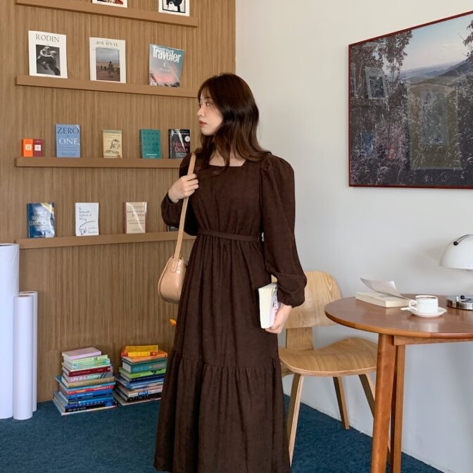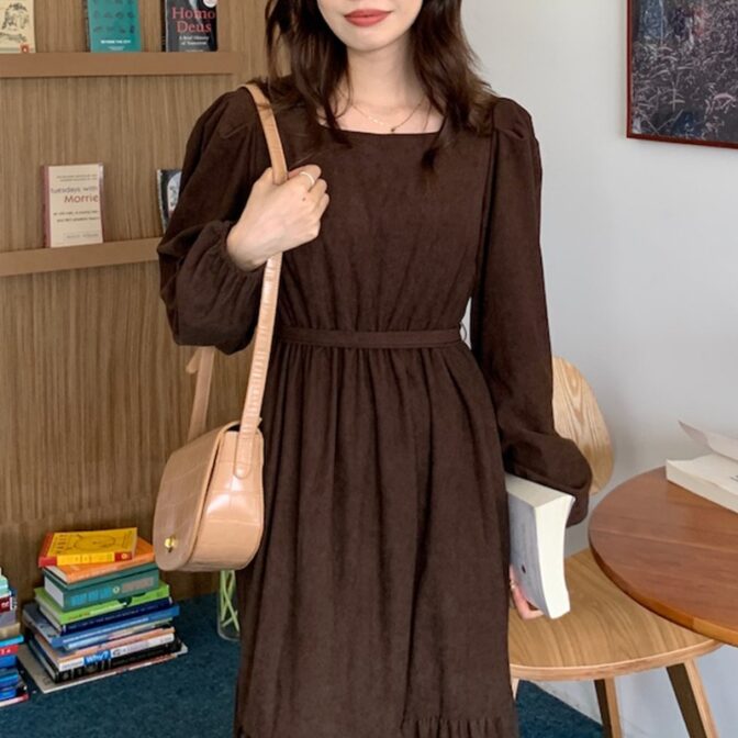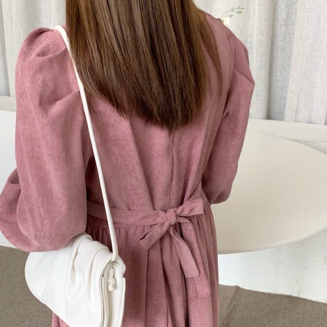スクエアネックコーデュロイワンピース