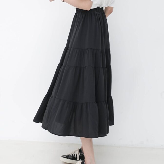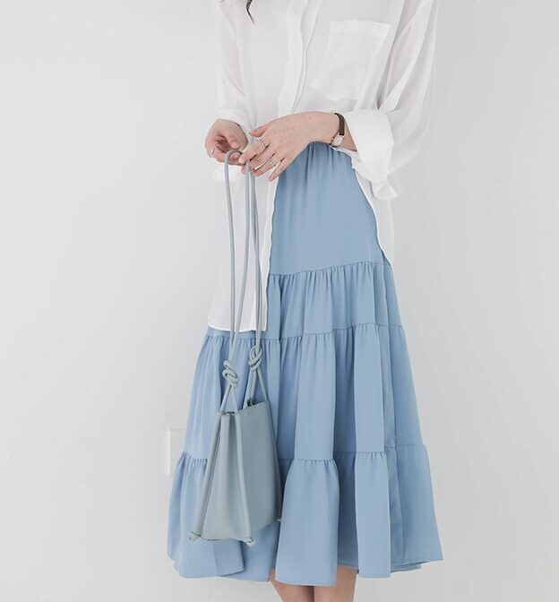 ボリュームのあるシンプルなロングスカートはどんなトップスにも相性抜群◎