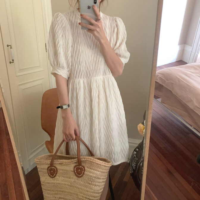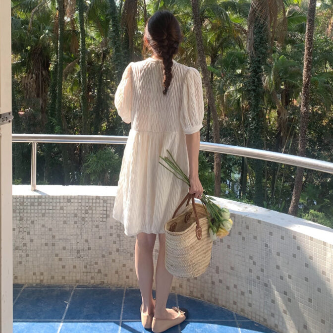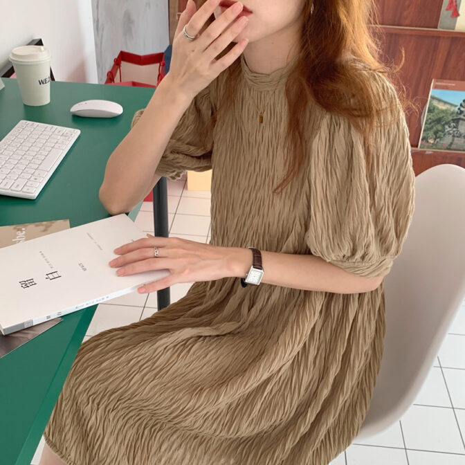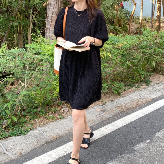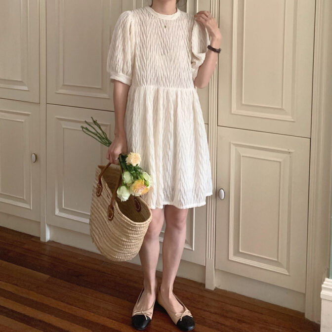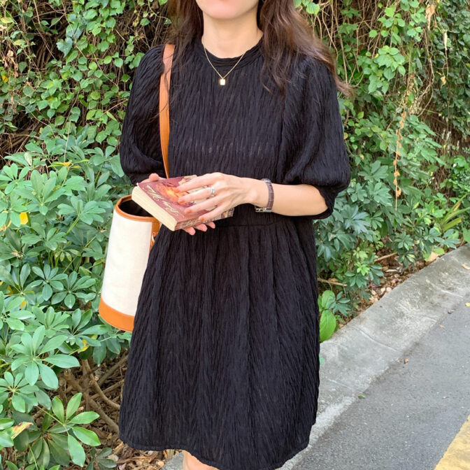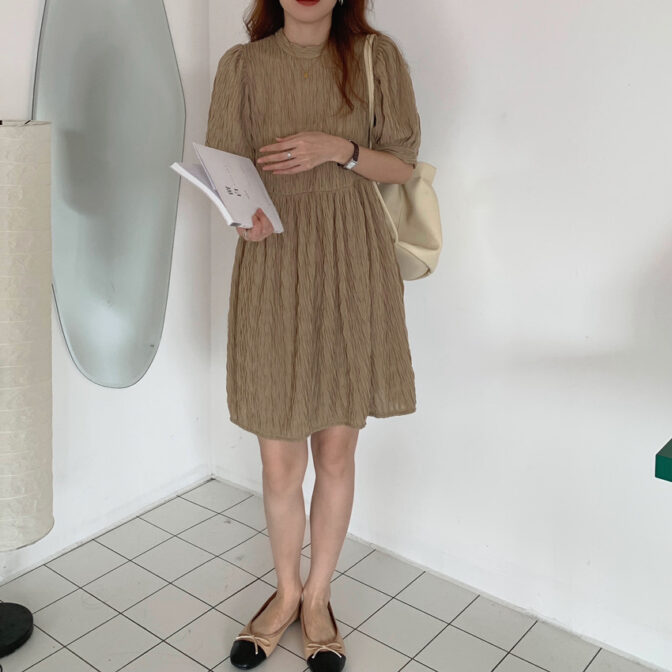 ぽわんとした袖のボリュームが目を惹くワンピースです