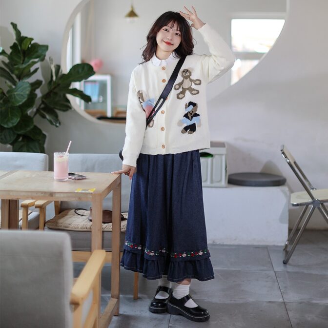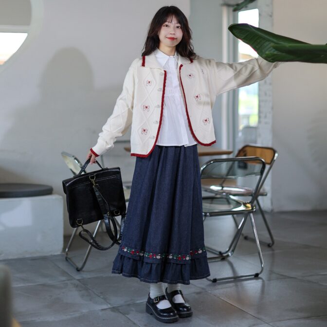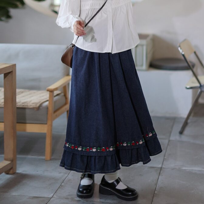 お花刺繍が華やかなデニムスカートです