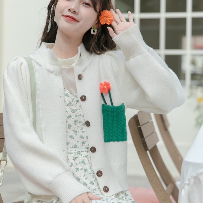 ぽこっと立体的なお花の刺繍が可愛い♡