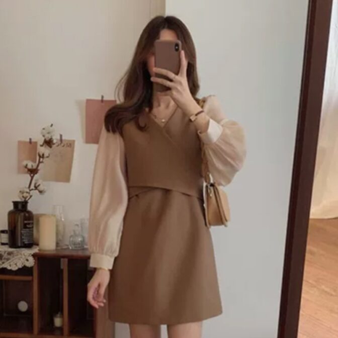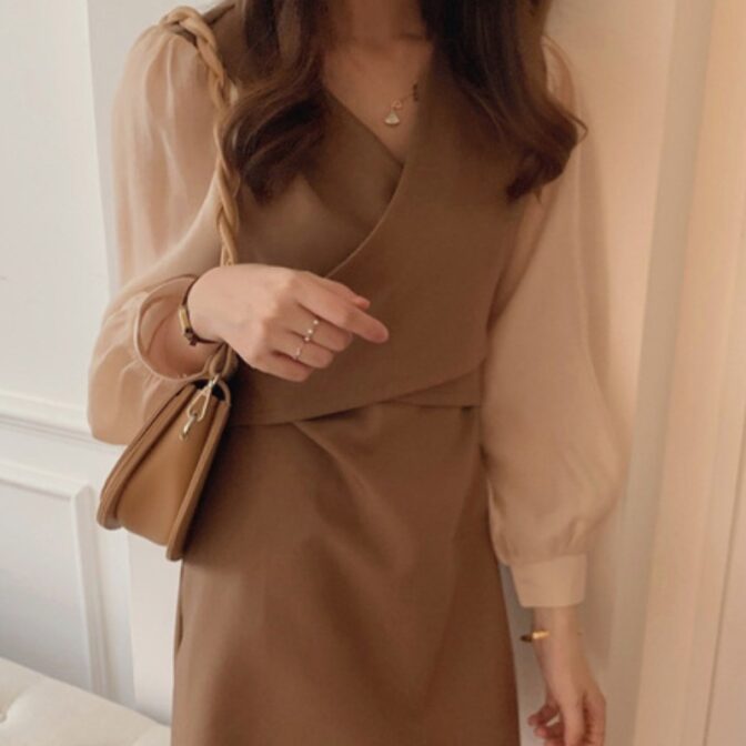 袖はふわっと、ウエストのクロスは上品で女性らしいです♡