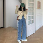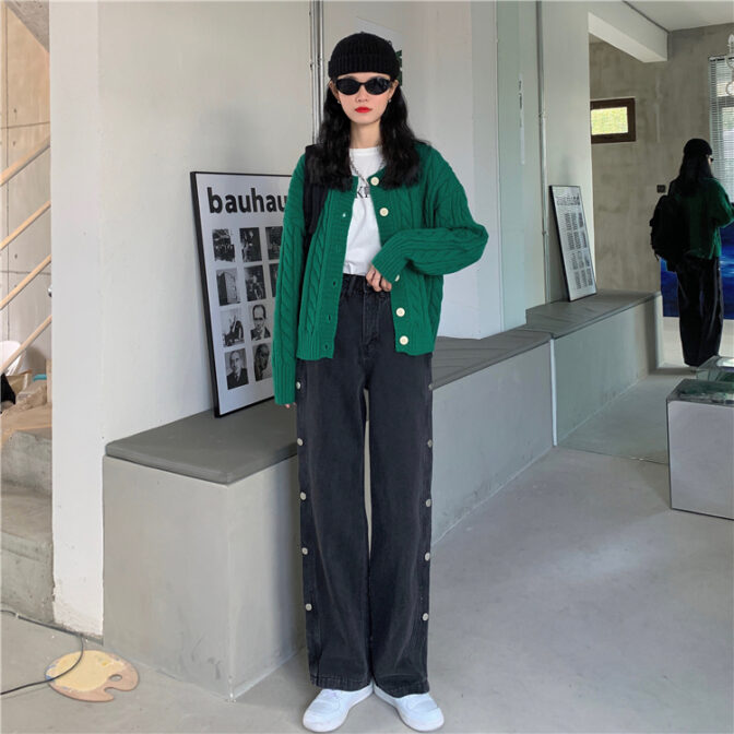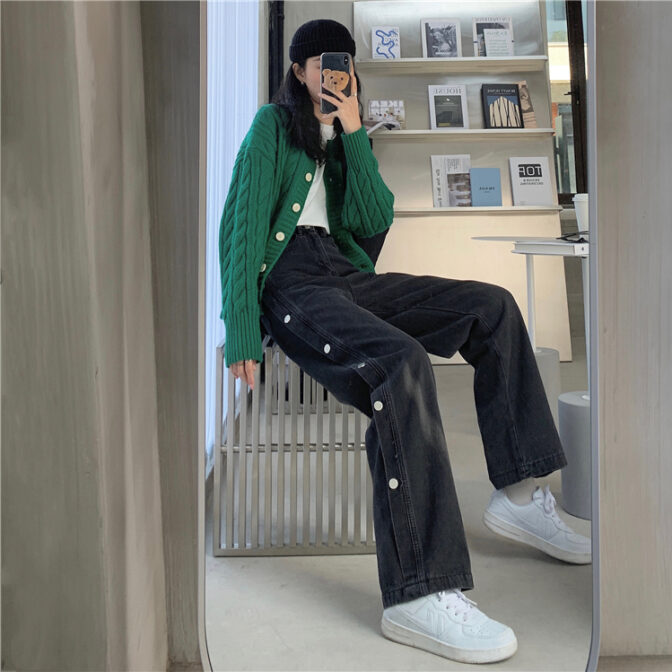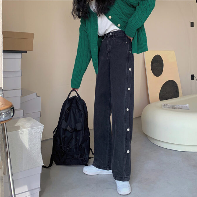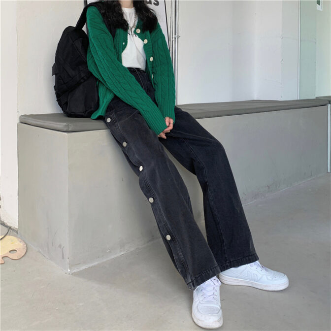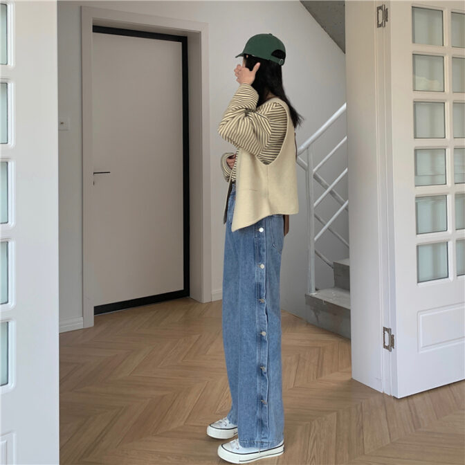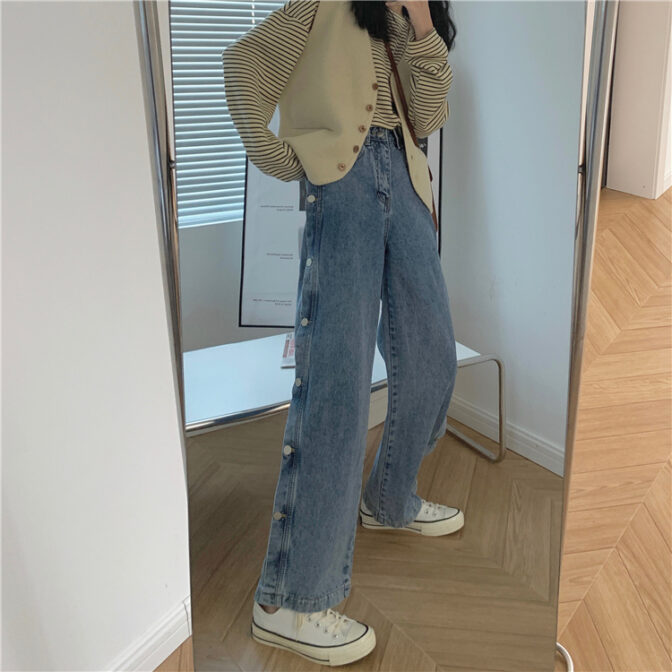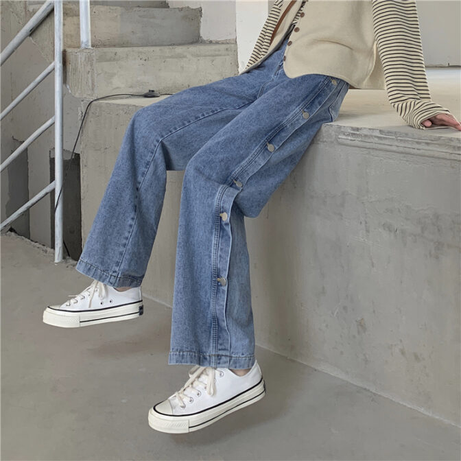 サイドボタンデニムパンツ