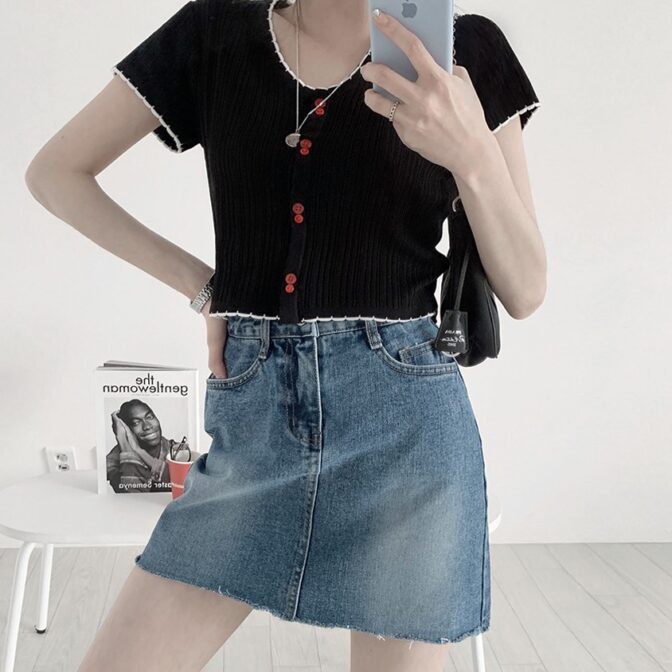 カジュアルなデニムやショーパンやスカートと合わせるのがおすすめ◎!