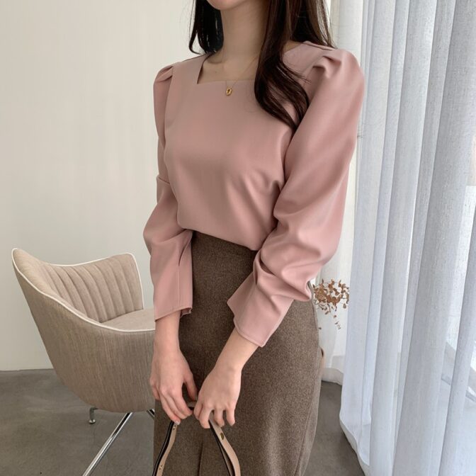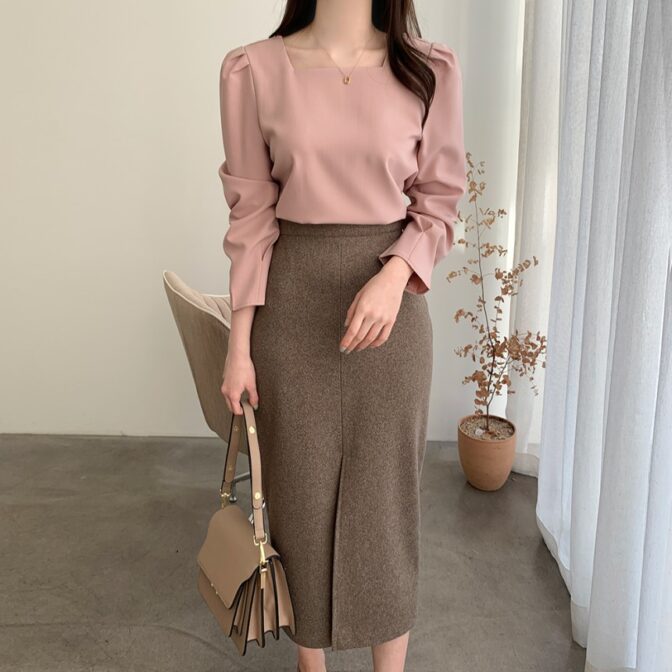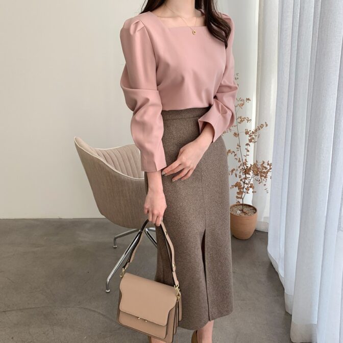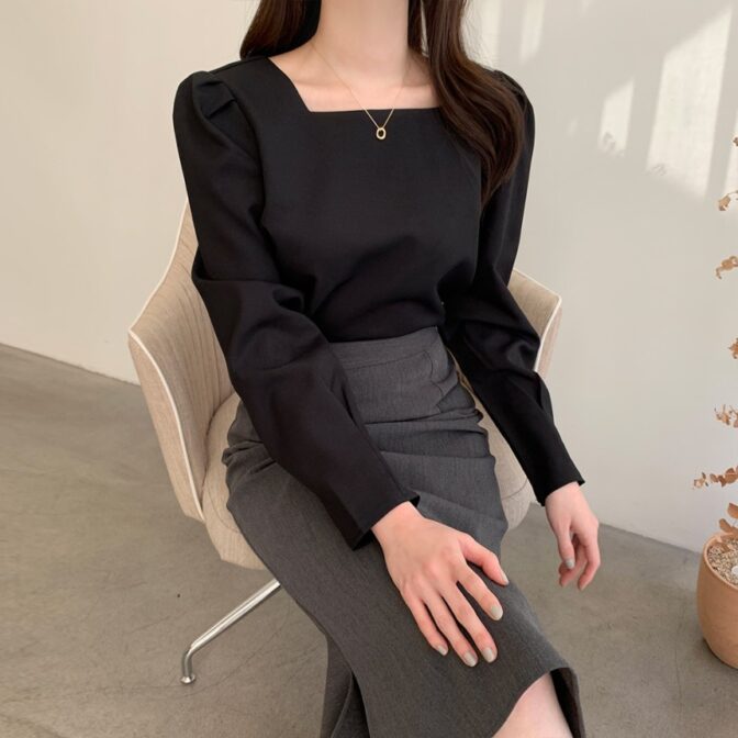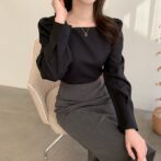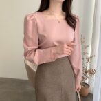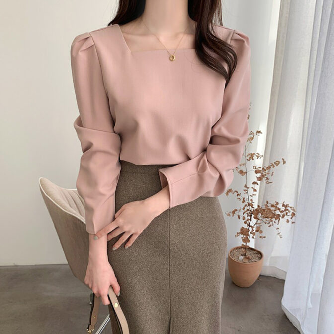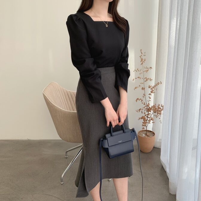 すっきりと開いたスクエアネックがデコルテをきれいに見せてくれます♡