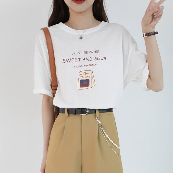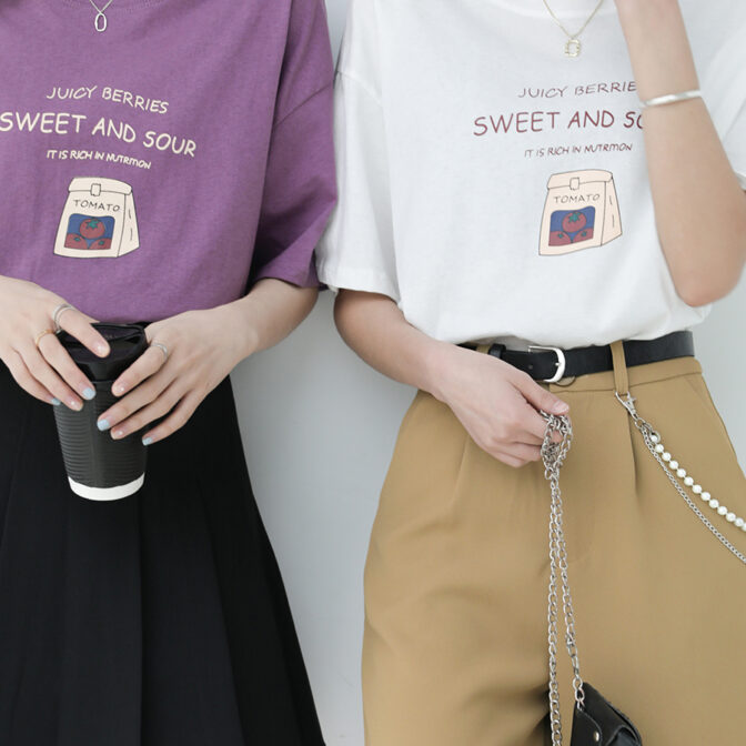 胸元のトマトロゴが可愛いTシャツです。