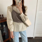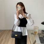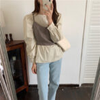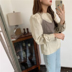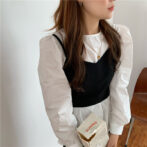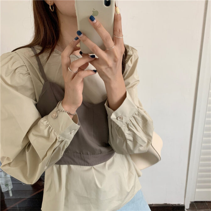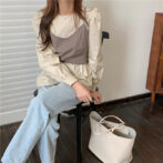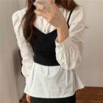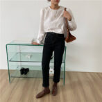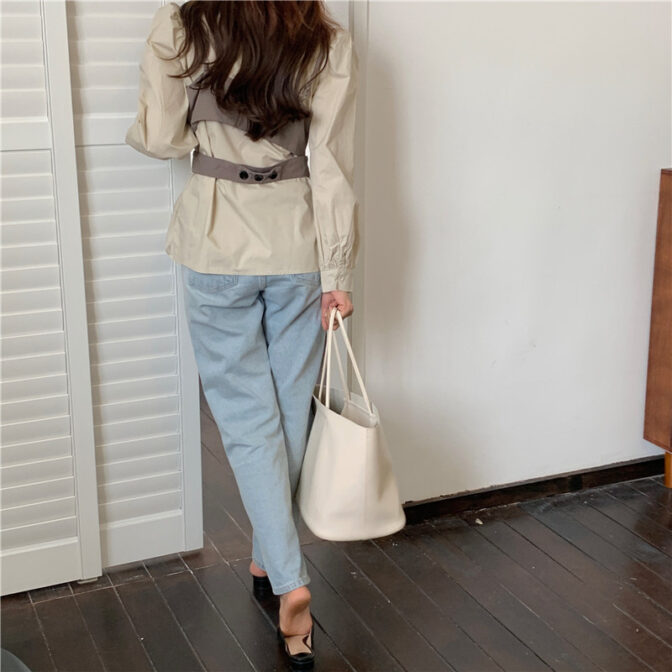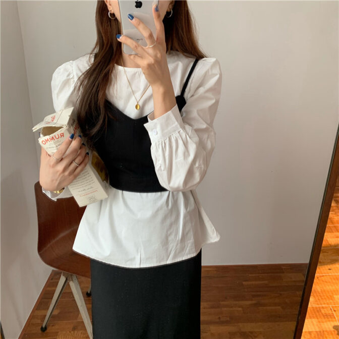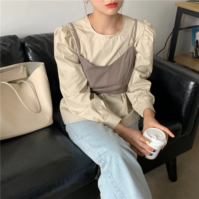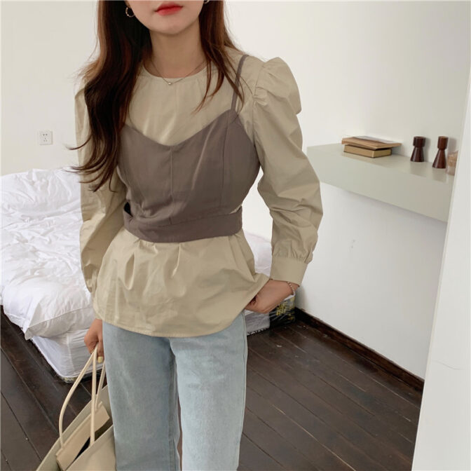 ふんわりとしたブラウス+ビスチェで、スタイルアップを実現。