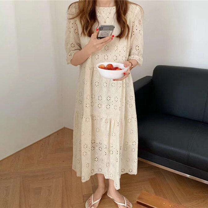 フラワー刺繍ワンピース