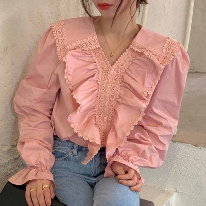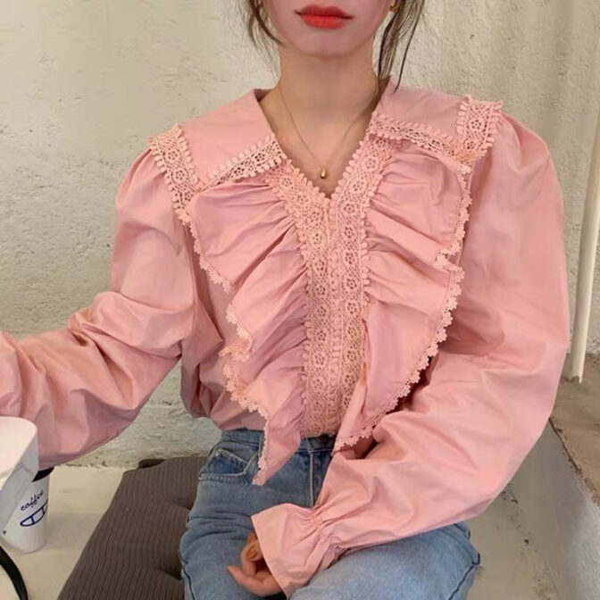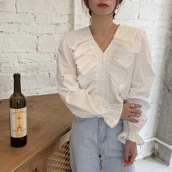 フリルVブラウス