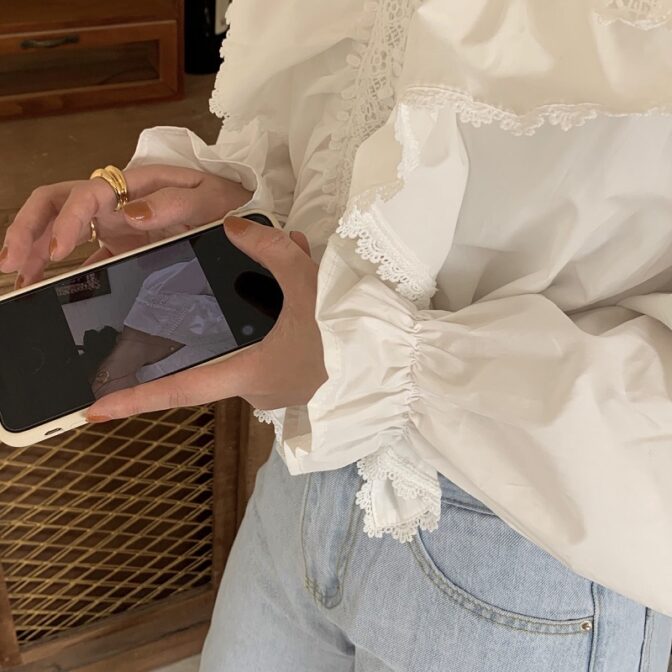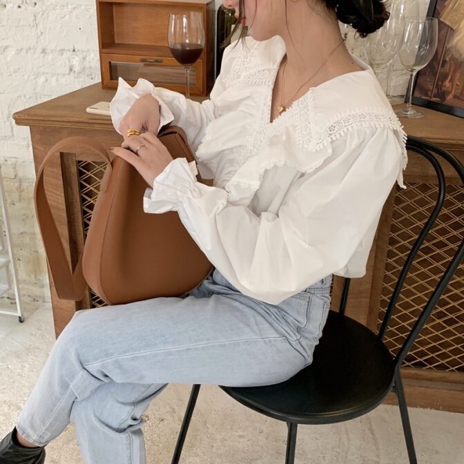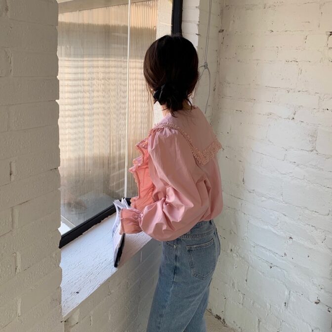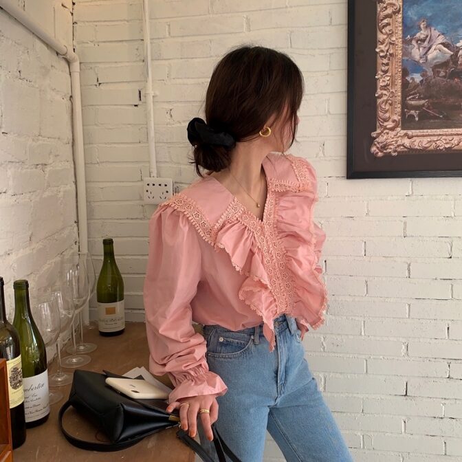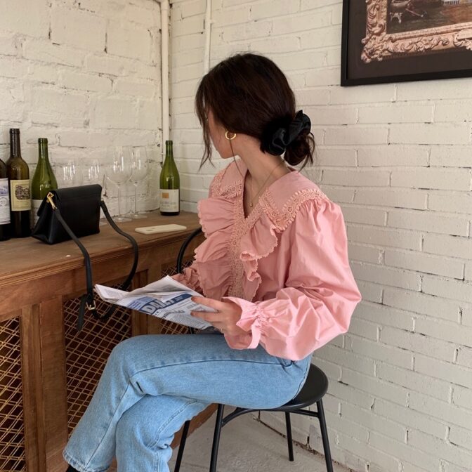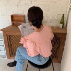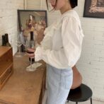 フリルにボリュームがあるので、デニムで合わせるのがおすすめ!