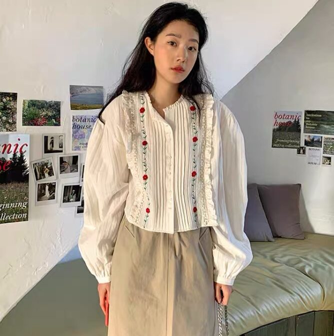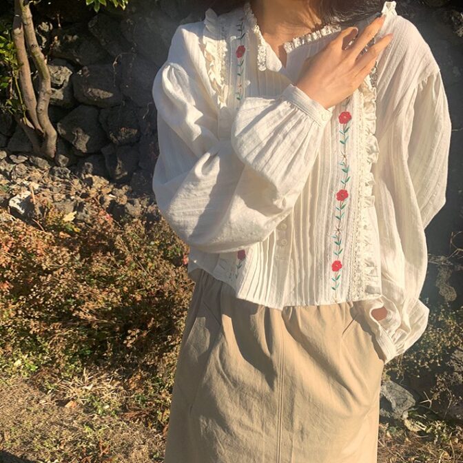 レトロ刺繍シャツ