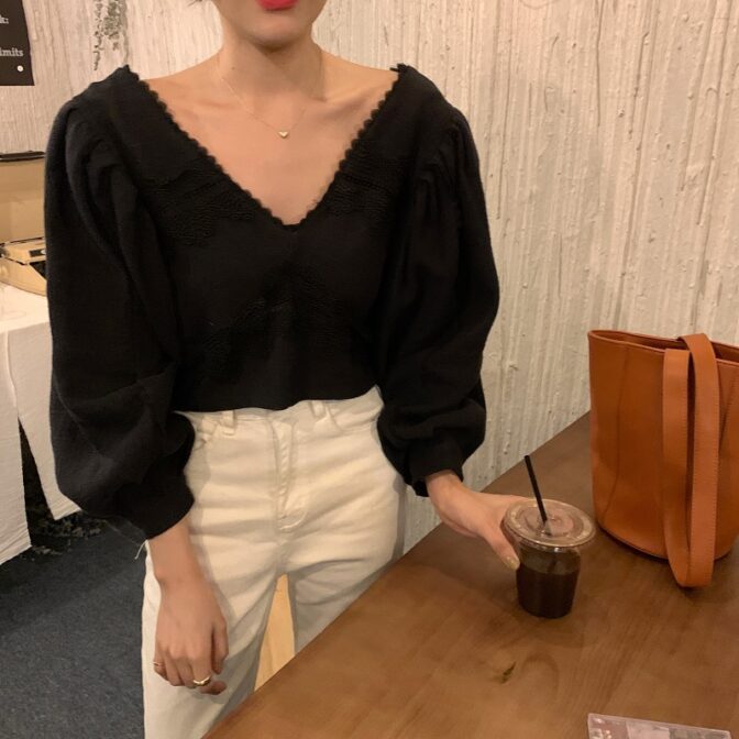 大き目に開いたVネックで、着やせ効果抜群です♡