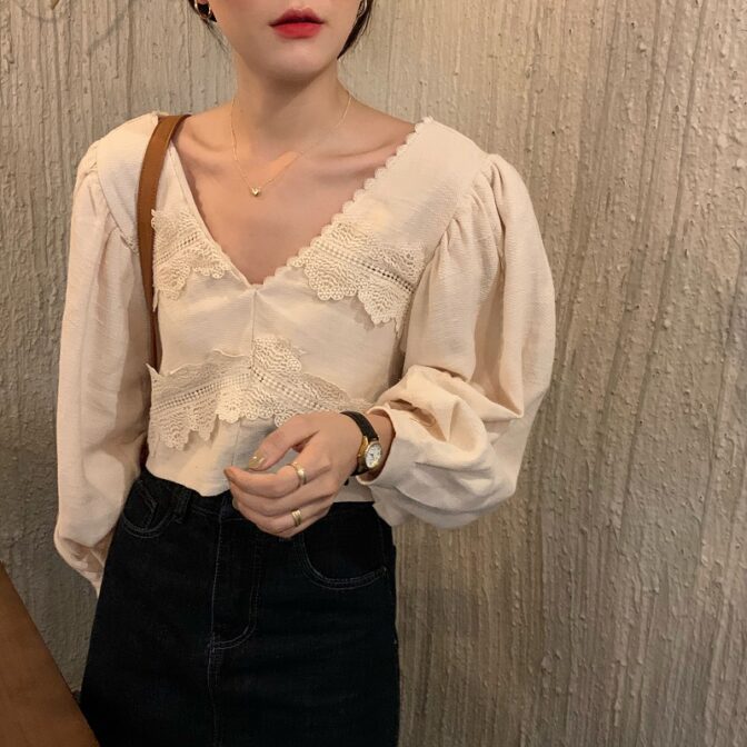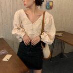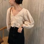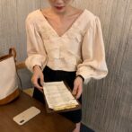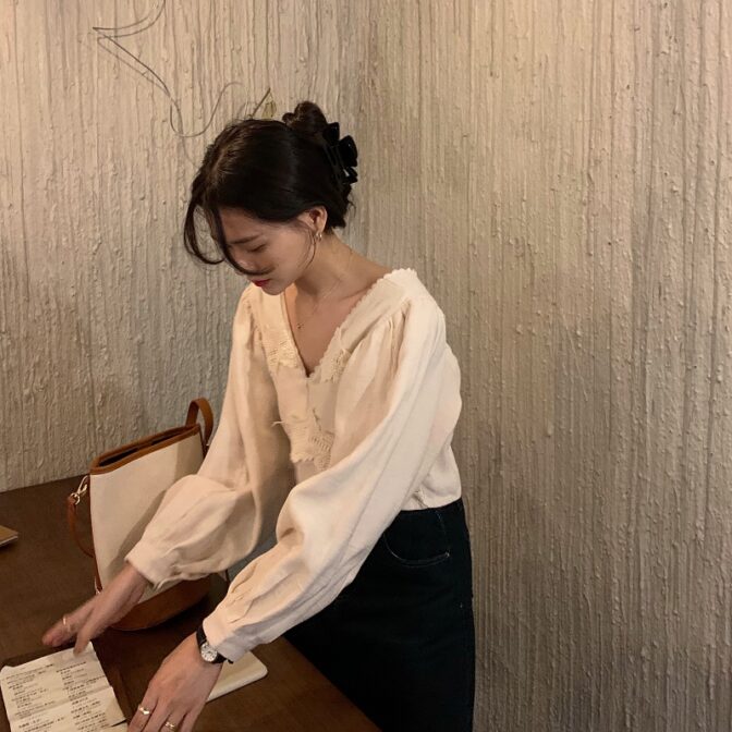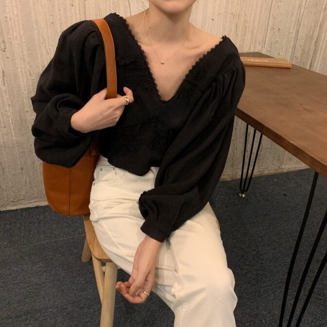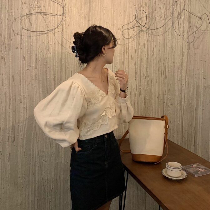 使用しているレースも、ブラウスと同じ色なので、甘くなりず